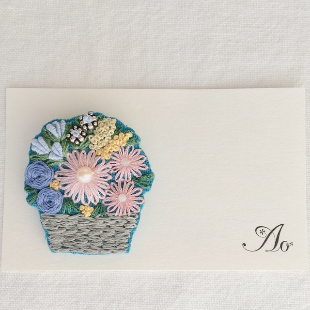 フランス刺繍で花籠を刺繍、淡水パールやシルバー925ビーズを飾って、ブローチに仕立てました。 サイズ 約 4cm