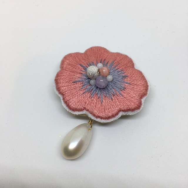 手刺繍に天然石を飾り、ヘアゴムに仕立てました。