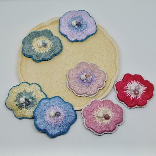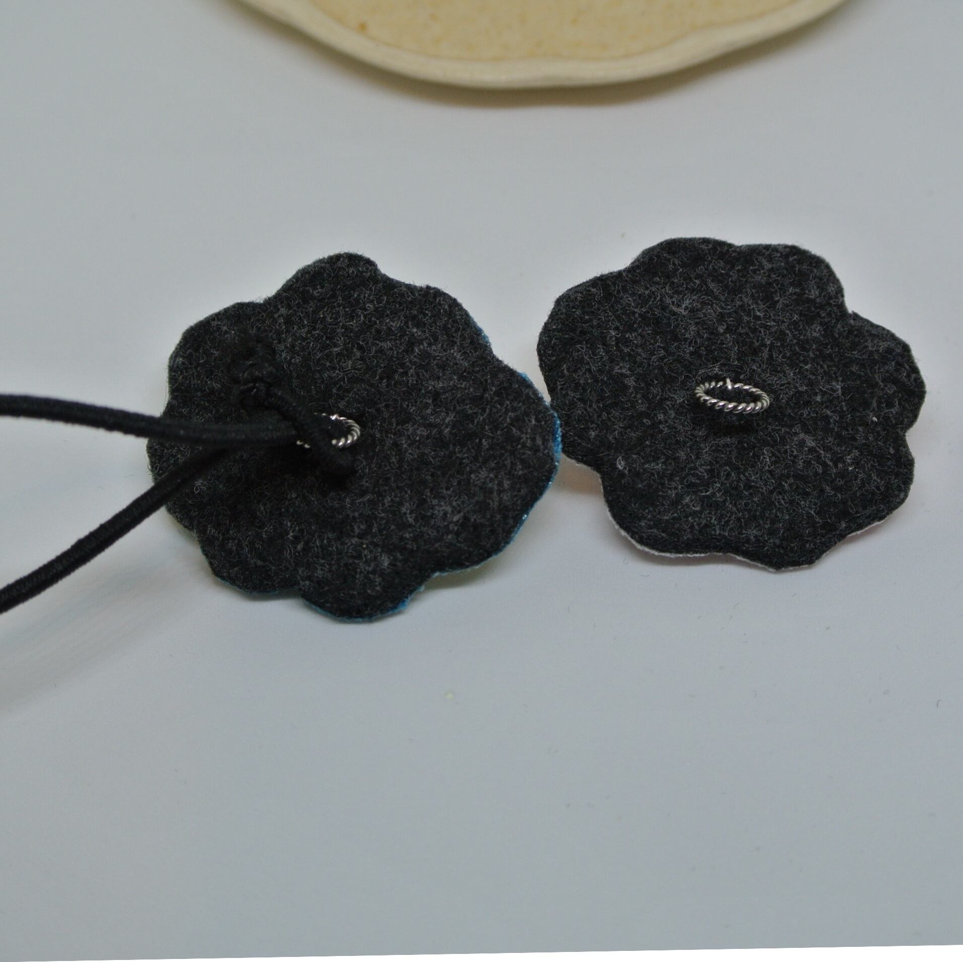 手刺繍にほつれ止めをし、フェルトに貼った軽いヘアゴムです。