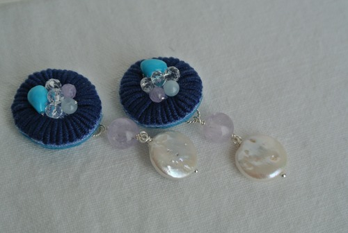 手刺繍に天然石を組み合わせたピアスです。