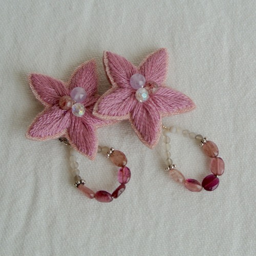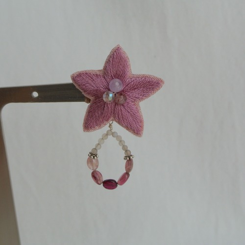 星の形、5枚花を手刺繍し、天然石を飾りました。