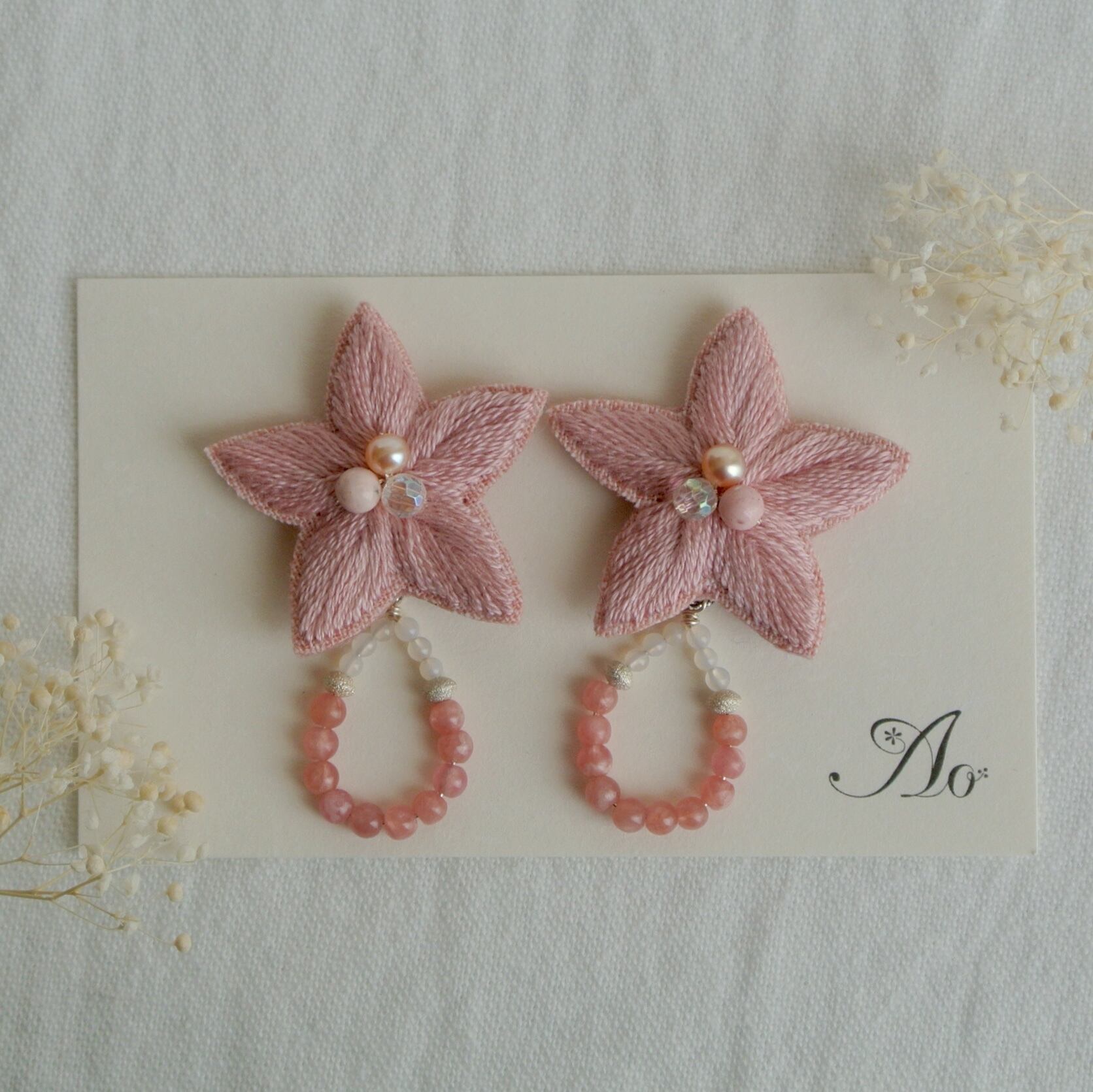 ペールピンク 5枚花のピアス インカローズ